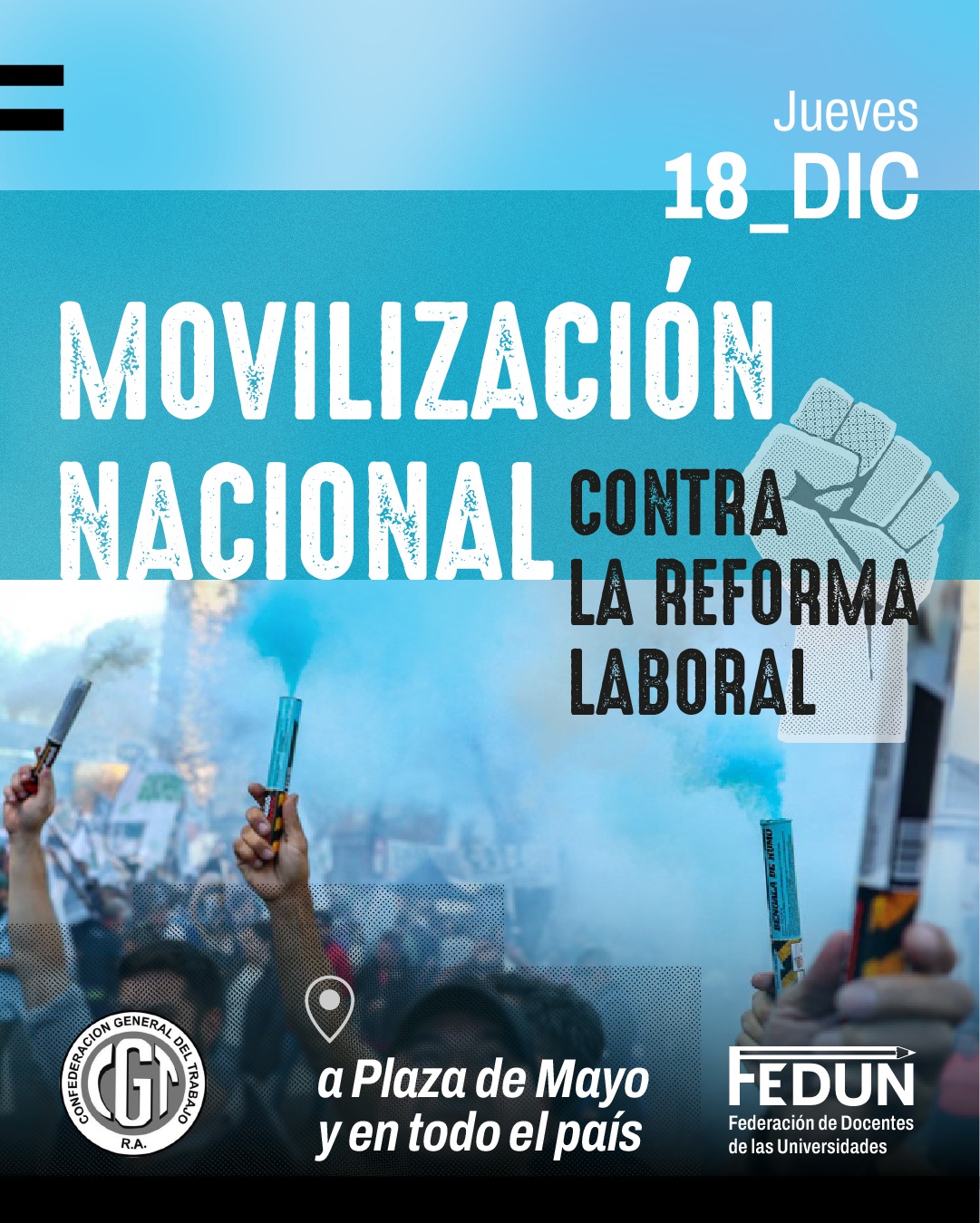 En este sentido y como primera medida de rechazo a este proyecto de reforma laboral impulsado por el gobierno de Javier Milei, invitamos a los trabajadores y trabajadoras a participar el próximo jueves 18 de diciembre a las 15 hs a las movilizaciones que tendrán lugar en Plaza de Mayo y en todo el país contra este proyecto de reforma laboral.